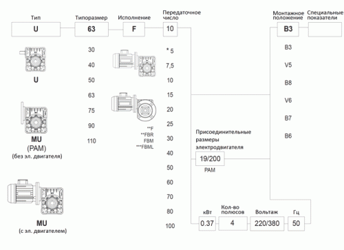 * Передаточное число 5/1 доступно до типоразмера MU 63 включительно.